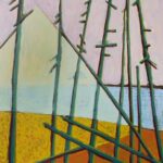 Specializing in abstraction, Keen’s work explores the relationship between place and perception, often at the intersection of natural and built environments. In this collection, Keen invites viewers into abstracted Maine landscapes shaped by memory, movement, and lived experience in the natural world. Using bold color, geometric forms, and shifting horizons, the work moves fluidly between representation and abstraction. Inspired by local trails, coastal vantage points, and the act of moving through nature, the paintings capture the feeling of a hike more than the exact terrain.